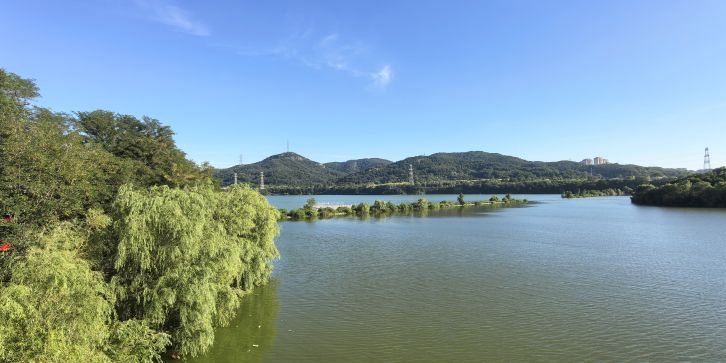 位于大连市甘井子区大西山水库上游,地处大连市西南部,隶属于大连市甘井子区红旗街道,在旅顺中路上,依傍西山水库。一座集生态保护、休闲观光、运动健身等多功能于一体的城市公园。公园占地面积 100 万平方米,其中岛屿、水域面积 80 万平方米,环湖景观带面积 20 万平方米。西山湖水域宽广平静,湖水清澈,周围群山环绕,山上植被茂密,四季景色各异,山水相映成趣,构成了一幅美丽的自然画卷。公园内种植了大量的花卉和树木,如樱花、桃花、梅花、荷花等,还有各种灌木和草坪,形成了丰富的植被景观。