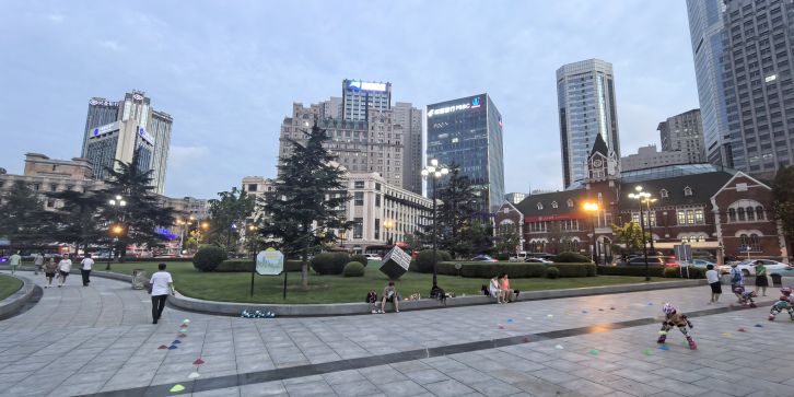始建于 1899 年,1903 年竣工,最初取名为尼古拉耶夫广场,1946 年,以孙中山的名字命名为中山广场。广场呈圆形辐射状,中心圆台直径 213 米,10 个出口延伸出 10 条街道,通向四面八方,总面积 2.2 万平方米,是大连市乃至东北地区最大的圆形广场。中山广场是巴黎式的辐射式布局,有异于中国传统的方格式建筑布局,广场周围建筑有罗马式、哥特式、文艺复兴风格和折中主义等,欧味很浓,玉石铺装的中心圆台典雅醒目。中山广场的建设经历了沙俄租借、日本占领和中苏共管及新中国等几个重要历史时期,周边建筑见证了大连地区百余年的历史变迁,是大连城市发展的活化石。广场近代建筑群是中国二十世纪建筑遗产,是全国重点文物保护单位,其中包括 3 座国家级文物保护单位、5 座省级文物保护单位,具有极高的文化、艺术价值。