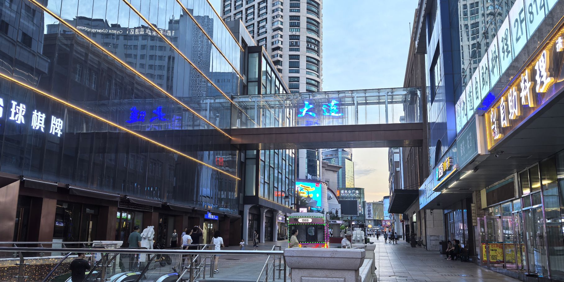 始建于 1909 年,已有百余年历史,是大连商业的发祥地。1946 年称合作街,1949 年改为天津街。1983 年部分路段改为步行街,天津街繁荣达到顶峰,日客流量达 10 万多人次,成为名副其实的 “大连第一街”。2003 年进行改造,全长由 1720 米缩短至 1054 米。处于大连火车站以东,友好广场、中山广场以北,呈弓形走向,地处大连 “六个中心”,即金融中心、商业中心、文化中心、信息中心、国际航务中心和大连市唯一的中央商务中心区。