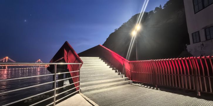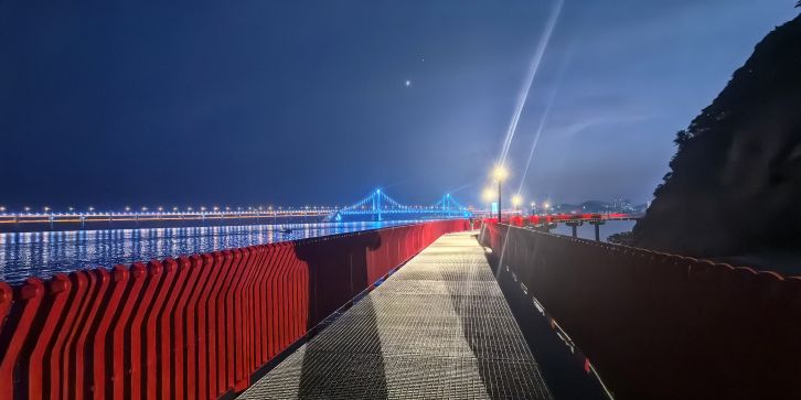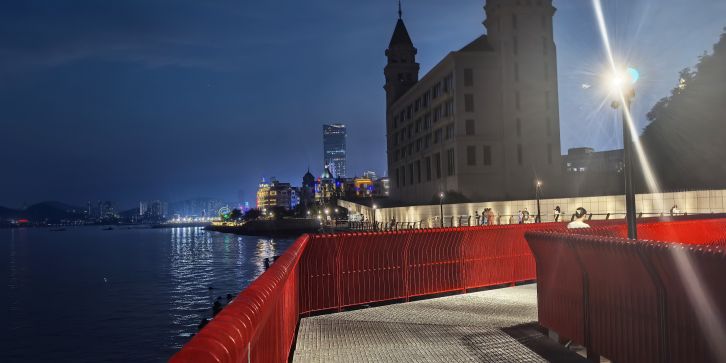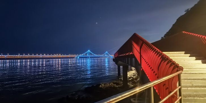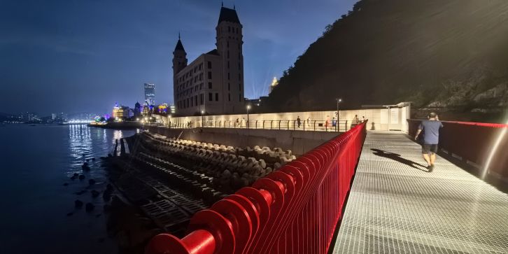 位于大连市沙河口区,西起星海新天地,东至金沙滩公园。站在栈桥上,可 360 度观赏无敌海景,能将星海湾的辽阔尽收眼底,还可看到星海湾大桥,无论是日出时旭日东升跃然海面的蓬勃,还是日落时晚霞漫天的绝美,都能让人感受到极致的视觉享受。红色的桥身与碧海蓝天相互映衬,形成色彩反差,非常出片,转角处还有多个亲海观景台,为游客提供了绝佳的拍照打卡点,沿途还有各种漂亮的涂鸦,也增添了拍照的趣味性。