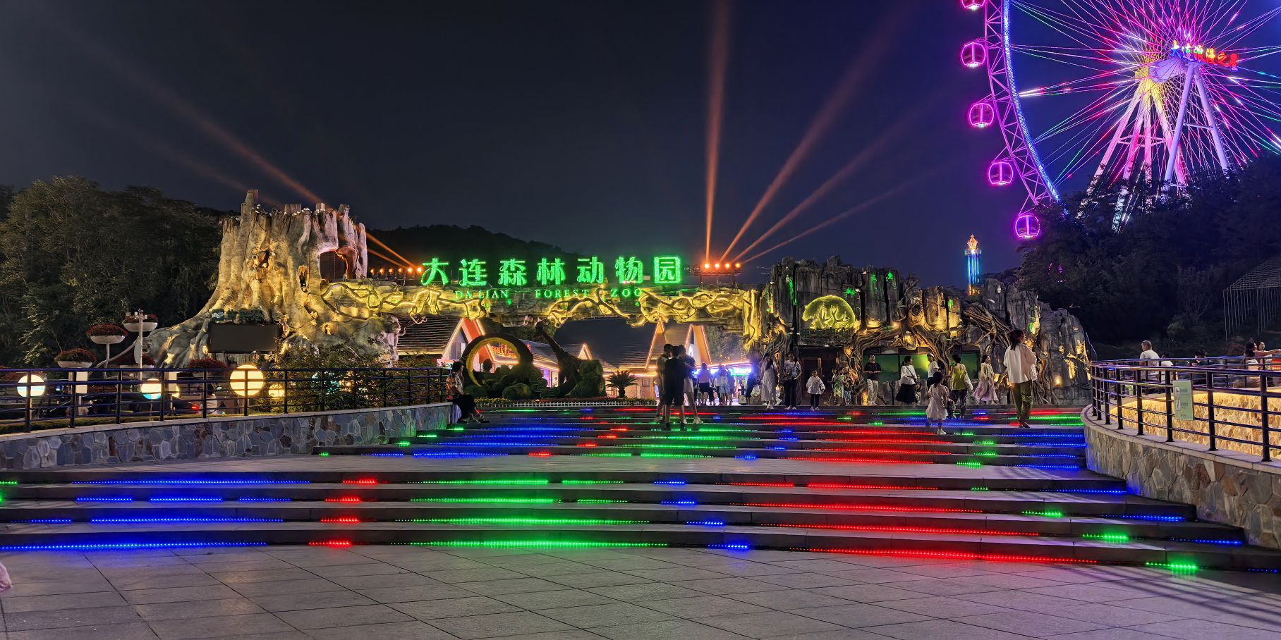 坐落于大连市南部海滨白云山风景区内,占地面积 7.2 平方千米,总规划面积也为 7.2 平方千米。始建于 1909 年,最初为 “电气游园”,历经多次更名和搬迁,1995 年搬迁至白云山景区,改名为 “大连森林动物园”,1997 年一期圈养区建成开园,2000 年二期散养区建成并试开放。