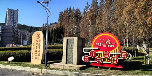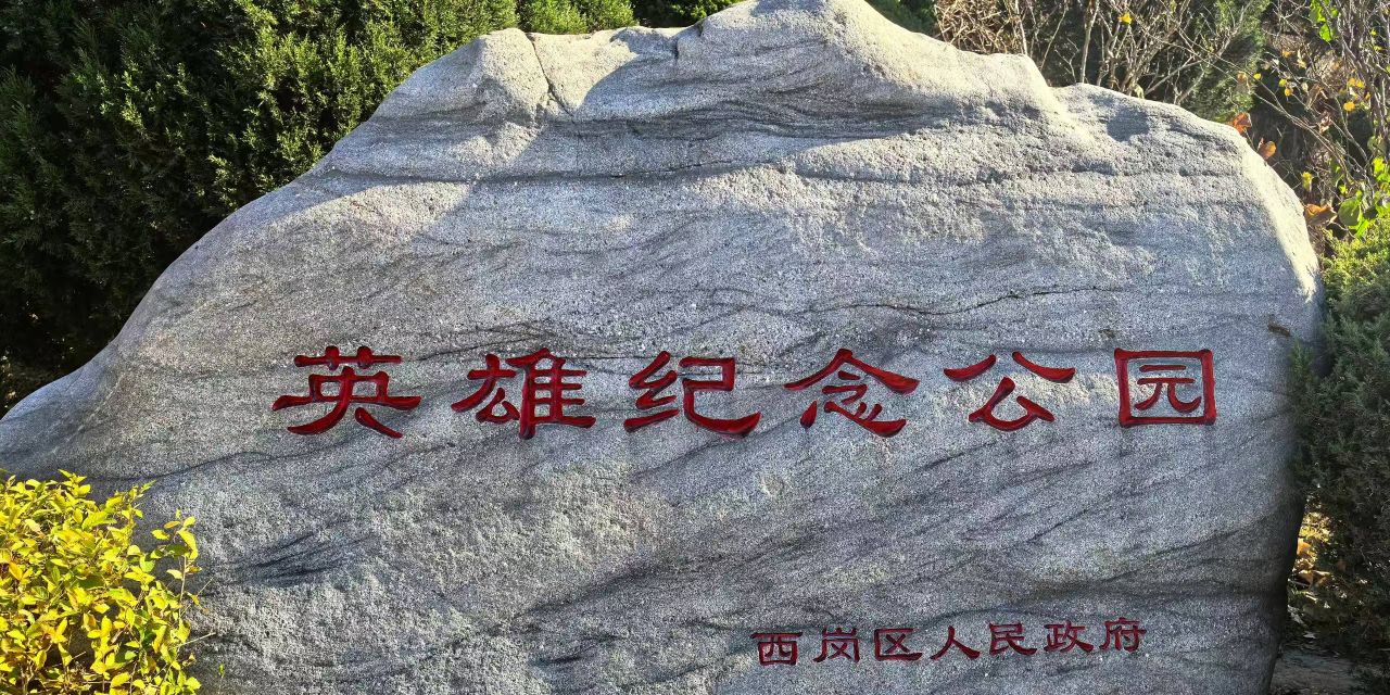 1998 年 3 月 28 日,大连市政府投资 3500 万元动迁原址单位开始修建,1999 年 7 月竣工建成,占地面积 10.06 公顷。内有英雄事迹展览和烈士墓地。英雄事迹展览有李大钊、林祥谦等 58 位革命先驱的石雕、铜塑,还有 180 平方米的中国人民革命史浮雕墙,刻画了从鸦片战争到新中国建设各个时期的主要历史事件。烈士墓地有 1960-2002 年期间牺牲的 86 位烈士墓碑。总面积 23800 平方米,分为山上广场和山下广场。山上广场有 17 米高的 “血与火” 纪念碑,夜晚经霓虹灯照射似红火燃烧。纪念碑旁有观景台可俯瞰公园全貌。山下有面积 1037 平方米的英雄事迹展览馆和 1000 平方米的英雄广场,广场北侧有跨度 40 米的大型叠水。